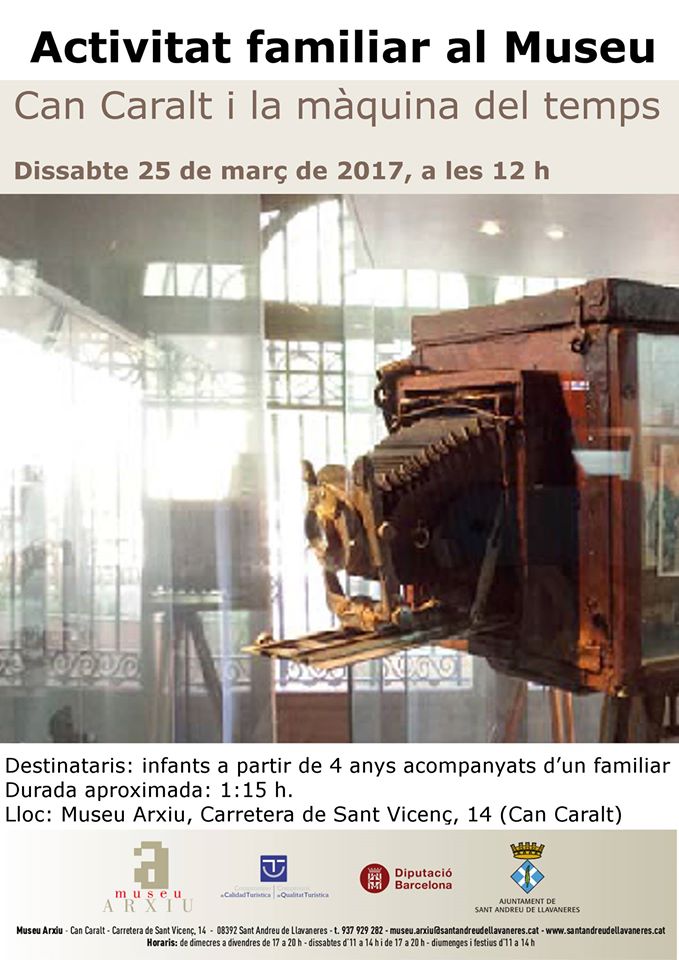 - Coneixerem tant la col·lecció de ràdio i fotografia del Museu de Llavaneres i també l'antiga casa de Can Caralat.Després de la visita a l'àmbit de radio i fotografia, l'educador llegirà una carta d'un antic habitant de la casa, que ens descobrirà com era fa 100 anys. A través d'aquest escrit els participants visitaran l'edifici, tot comparant les diferències entre la masia i el Llavaneres de fa 100 anys i el d'ara. Posteriorment es realitzarà una activitat plàstica.