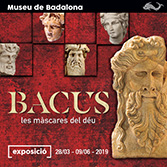 - Bacus és el déu del vi, del teatre i de la fecunditat. Equivalent al grec Dionís, recull també tradicions molt antigues i aglutina altres divinitats. Capaç d'encomanar el furor, la passió i el frenesí, representa els aspectes més irracionals de l'ésser humà per contraposició al sentit de l'ordre i de la mesura encarnat per Apol·lo.L'exposició ens descobreix els orígens del déu -l'últim que ingressà a l'Olimp-, les seves gestes, la composició del seu seguici, el seu paper en l'origen del teatre, els elements que el simbolitzen i el seu marcat caràcter de divinitat domèstica.La mostra també subratlla la relació entre Bacus i la ciutat romana de Baetulo que, a més de disposar d'un teatre, tenia la principal font de riquesa en el conreu de la vinya i la producció i comercialització del vi. Inclou peces del Museu de Badalona, algunes de qualitat excepcional, i una cinquantena d'objectes procedents d'altres museus catalans, que testimonien l'arrelament d'aquesta divinitat en la societat de l'època romana i que permeten descobrir totes les màscares d'aquest déu polièdric i complex.
