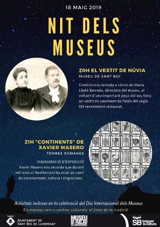 - Amb motiu de la Nit dels Museus el Museu de Sant Boi ha programat una conferència xerrada a càrrec de Maria Lledó Barreda, directora del Museu, al voltant d'una important peça del seu fons: un vestit de casament de finals del segle XIX recentment restaurat.