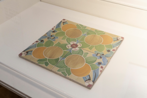- La peça exposada aquest mes posseeix un gran valor històric i artístic, es tracta d'un arrimador, d'estil modernista, realitzat pel ceramista valencià Lluís Bru i Salelles per a l'arquitecte Lluís Domènech i Montaner.
