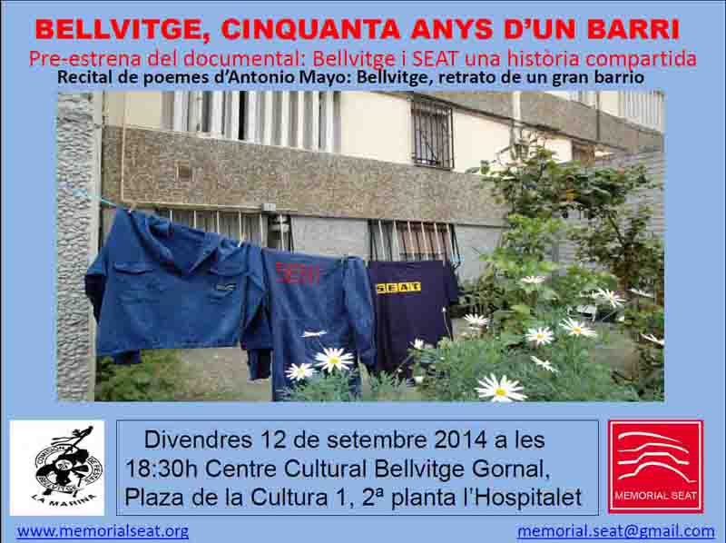 - Pre-estrena del documental produït pel Memorial Democràtic dels Treballadors i Treballadores de SEAT amb la col·laboració del Museu de l'Hospitalet-Can Riera espai de memòria.Un documental dedicat a totes aquelles dones i homes que van participar activament en la lluita a SEAT i al barri de Bellvitge amb la finalitat d'arribar a tenir una vida més digna, justa i lliure.