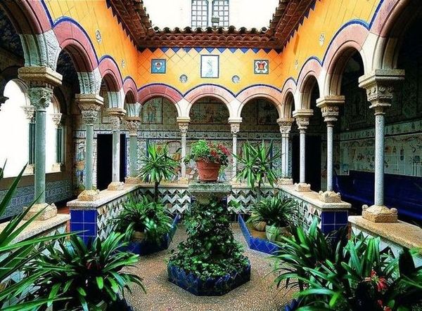 - El Palau de Maricel és un dels edificis més emblemàtics de Sitges. Integrat en el conjunt artístic i monumental de Maricel, també és conegut com Maricel de Terra, per diferenciar-lo del Museu, denominat també com Maricel de Mar.El Saló d'Or, el Saló Blau, la Sala Capella, la Sala Vaixells, les terrasses o el claustre -des d'on hi ha una esplèndida panoràmica del Mediterrani- són els principals espais que estructuren el Palau. D'estil marcadament noucentista, les diferents sales es distingeixen per una decoració singular, que accentuen el seu caràcter.