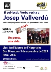 - El Col·lectiu Verba recita a Josep Vallverdú, en el seu centenari, amb l'acompanyament musical a la guitarra de Carina Pinto al jardinet de Casa Espanya.