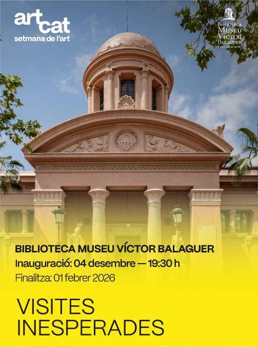 - Diàlegs entre obres de les Galeries d'Art de Catalunya i la col·lecció de la Biblioteca Museu Víctor Balaguer.Set obres d'art, provinents de fons de galeries de l'associació Galeries d'Art de Catalunya (GAC), s'infiltren durant unes setmanes amb les obres de la col·lecció permanent de la Biblioteca Museu Víctor Balaguer, creant cinc diàlegs amb relacions estètiques i conceptuals i trobades inaudites al llarg de l'itinerari del museu. La quarta edició de 'Visites inesperades' és un projecte concebut per Galeries d'Art de Catalunya, en el marc de la Setmana de l'Art 2025, un esdeveniment organitzat per aquesta associació. L'esdeveniment té lloc simultàniament a la Biblioteca Museu Víctor Balaguer i a la Fundació Palau de Caldes d'Estrac.