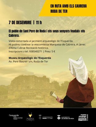 - Visita comentada al jaciment arqueològic de l'EsquerdaEl poble de Sant Pere de Roda i els seus senyors feudals: els Cabrera.Hi podreu conèixer la vescomtessa Marquesa de Cabrera. A càrrec d'Alma Cubrae Recreació històrica.